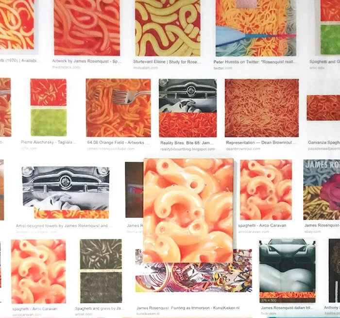 GREAT ARTISTS STEAL group show, Amsterdam, 2019. A 13x13feet (4x4 meter) wall, 16 paintings called Associates, 12x14”/14x17” (30x35cm/45x35cm), which are an ode to artists like On Kawara, James Rosenquist, Elaine Sturtevant, Deborah Kass, Ed Ruscha, Jean-Michel Basquiat, and others, appeared in google image search results, next to the originals.